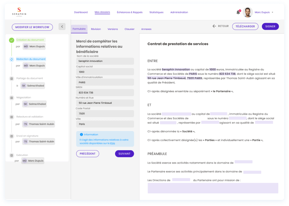 Point de jonction avec le juridique : le Contract Manager est en première ligne des défenses. Il prépare le dossier, trace tous les échanges pour permettre à la Direction Juridique ou au Cabinet d’Avocat en cas de contentieux de réécrire l’histoire grâce au “track records” ou à l’historique du fil d’activité sur le contrat.