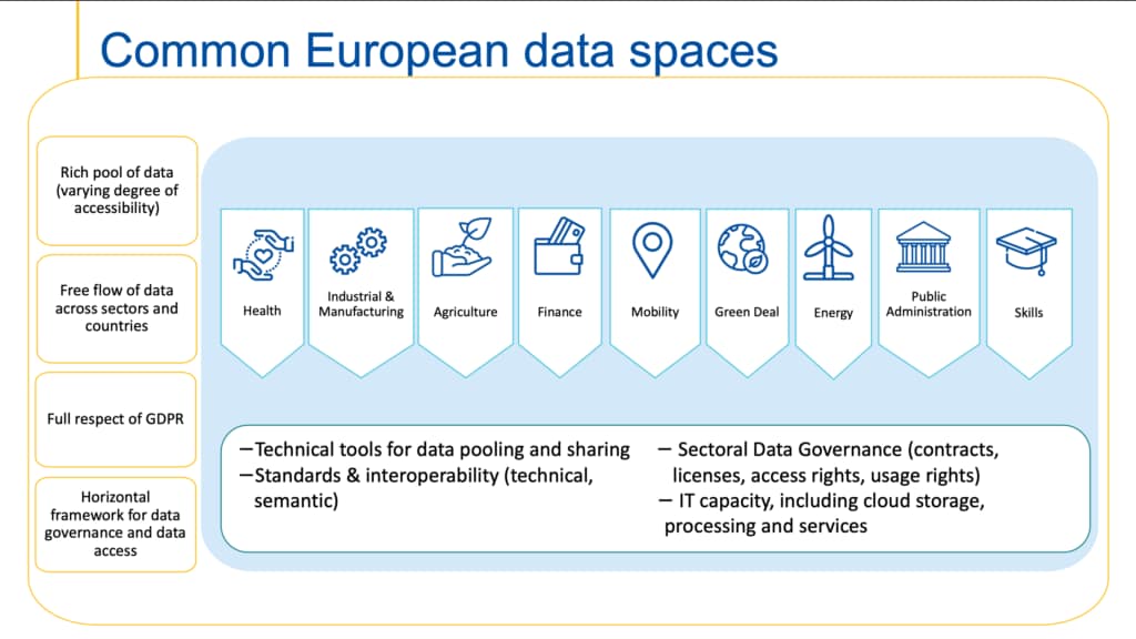 Mis en place grâce au Data Governance Act et associés à de nombreux biens communs numériques associés ( GaiA-X, Simpl…), les Data Spaces, ces “espaces européens communs pour les données” garantissent la disponibilité d’un plus grand nombre de données à utiliser dans l’économie et la société, tout en permettant aux entreprises et aux personnes qui génèrent les données de garder le contrôle.
