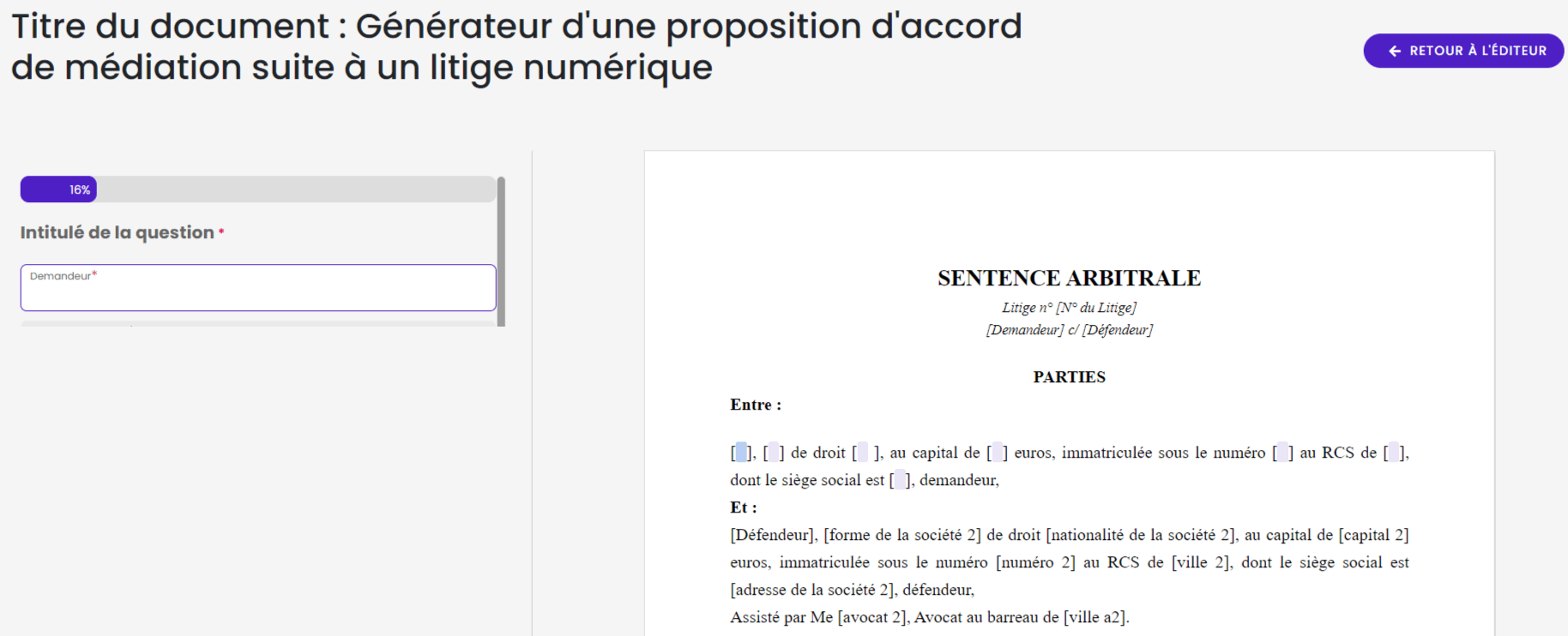 Ces algorithmes de génération de décision peuvent par exemple être utiles pour la rédaction de la présence d’un arbitre ou la décision d’un juge non spécialisé. L’algorithme est régulièrement mis à jour à partir des décisions rendues par nos centres de médiation et d’arbitrage partenaires et des décisions disponibles en accès libre sur Legalis.