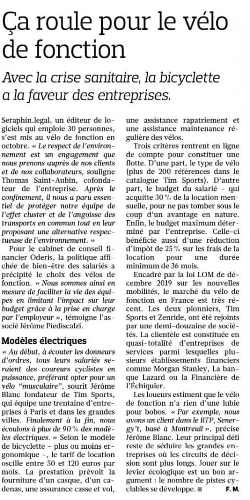 Près de la moitié des membres de notre équipe se déplacent à vélo. La pratique du vélo s’est d’ailleurs particulièrement développée suite au confinement. Chez Seraphin.legal, il nous a paru essentiel de protéger notre équipe de l’effet cluster e de l’angoisse des transports en commun tout en leur proposant une alternative respectueuse de l’environnement.
