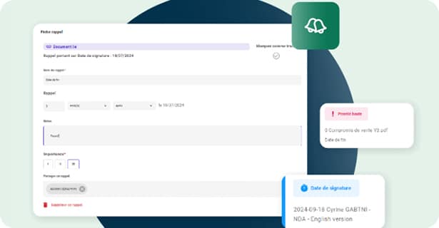 Le CLM vous envoie des alertes automatisées en amont des dates critiques (fin de contrat, options de renouvellement, délais de préavis), vous évitant toute rupture ou reconduction non désirée.